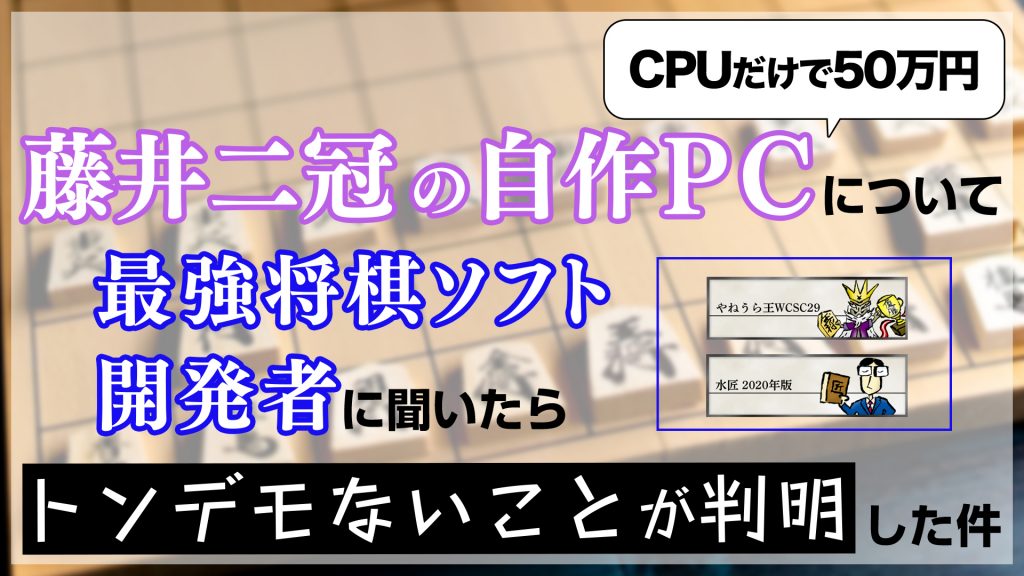 藤井二冠の自作pcについて最強将棋ソフト開発者に聞いたらトンデモないことが判明した件 ニコニコニュース